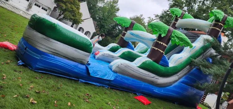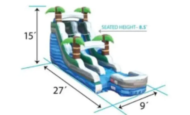 Get ready for a splash of fun this summer with the 15' Tropical Marble Water Slide! This vibrant and exciting inflatable is set to be one of the hottest rentals of the season, so be sure to reserve it early to keep your guests cool and entertained during the summer heat! The stunning tropical color scheme will make an impression the moment your guests arrive. Whether young or old, everyone will love the thrill of climbing to the top and zooming down the slippery slope for a refreshing ride!